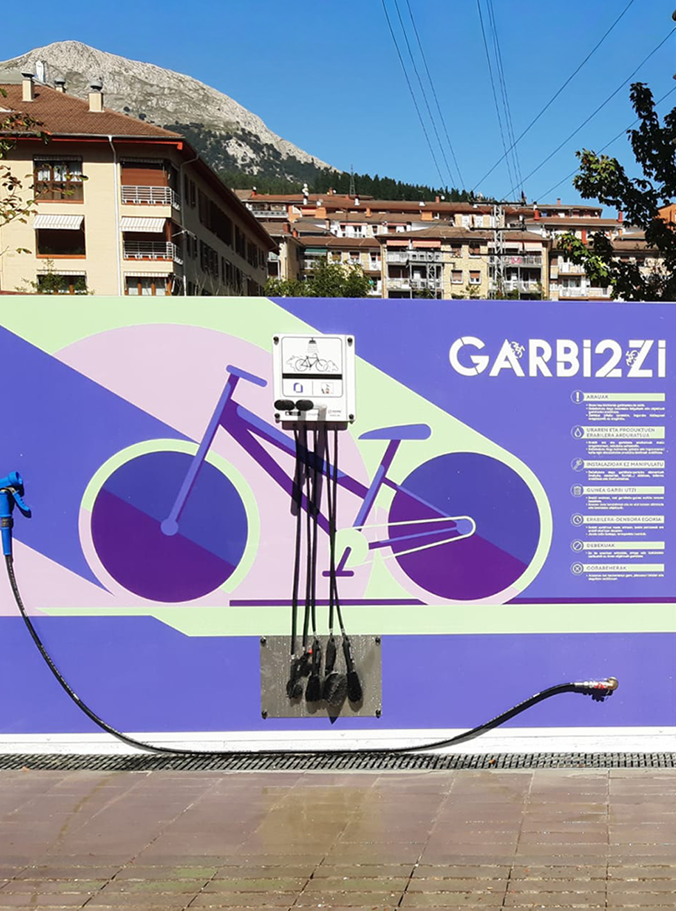 Bike Wash Point – IBOMBO AKVO is suitable for public spaces. It is designed for both: indoor and outdoor use and dedicated for small spaces. It requires a water supply and sewage system, which should be considered when planning the installation site. It is made of galvanized steel with powder or thermoplastic coating. The device is designed for wall mounting.